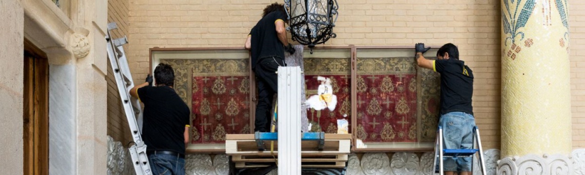 El frontal de altar de la iglesia del antiguo Hospital de la Santa Creu vuelve a su emplazamiento en el Recinto Modernista tras ser restaurado por el Centro de Restauración de Bienes Muebles de Catalunya.